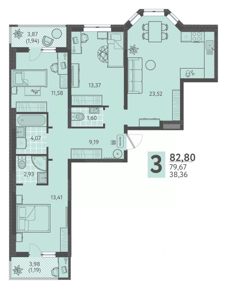 продам 3-к, Имени Виктора Анфиногенова, 12 корп. 211 498 800 ₽