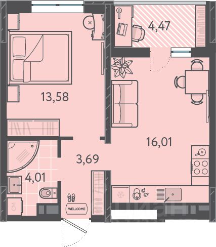 Жилая площадь13,6 м2