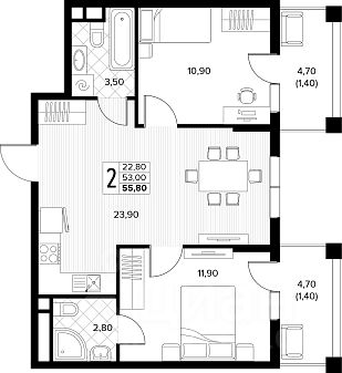 Продаётся 2-комнатная квартира в строящемся доме (поз.6), срок сдачи: IV-кв. 2027, общей площадью 55.8 кв.м., на 3 этаже. Новый жилой комплекс ''Кипарис'' от застройщика ''AVA'' расположен по адресу: Россия, Краснодарский край, муниципальный округ Анапа, село Сукко, Мирная улица