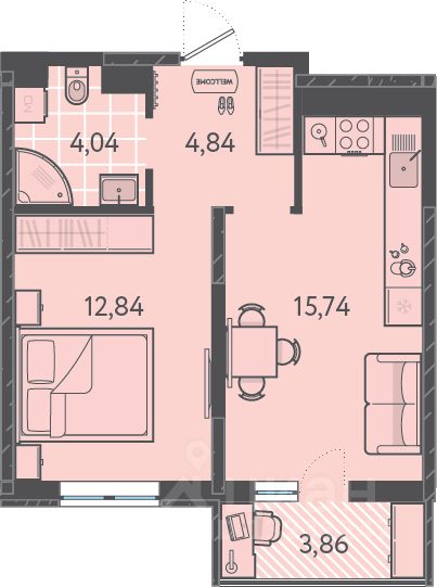 Жилая площадь12,8 м2