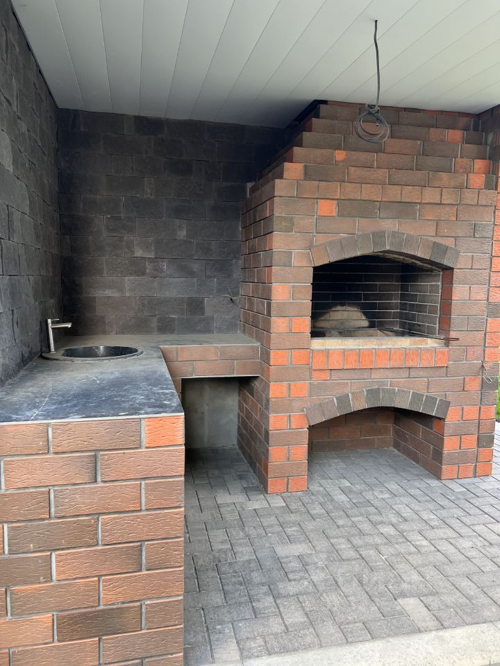 На первом этаже расположена гардеробная, спальня, ванная, котельная, прачечная, кухня-гостиная с выходом на террасу. Радом с террасой расположена мангальная зона. На втором этаже 3 спальни, ванная, балкон.