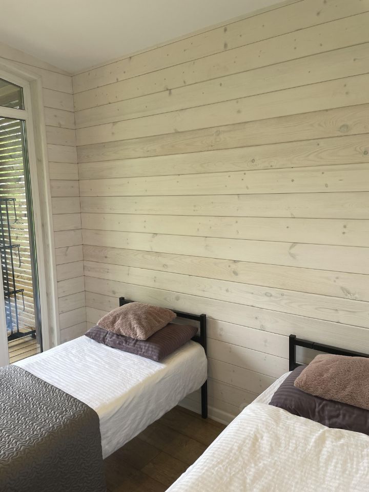 В доме есть вся необходимая для комфорта мебель и техника. Очень уютно сделаны зона санузла и терраса. На территории парковка. Автобус по расписанию 2 минуты от дома. очень тихое, уединенное место. При этом с хорошим транспортным сообщением!!!