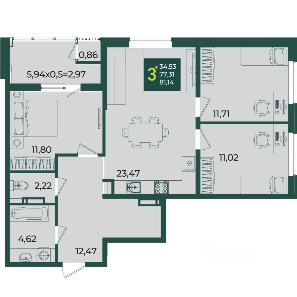 Общая площадь81,14 м2