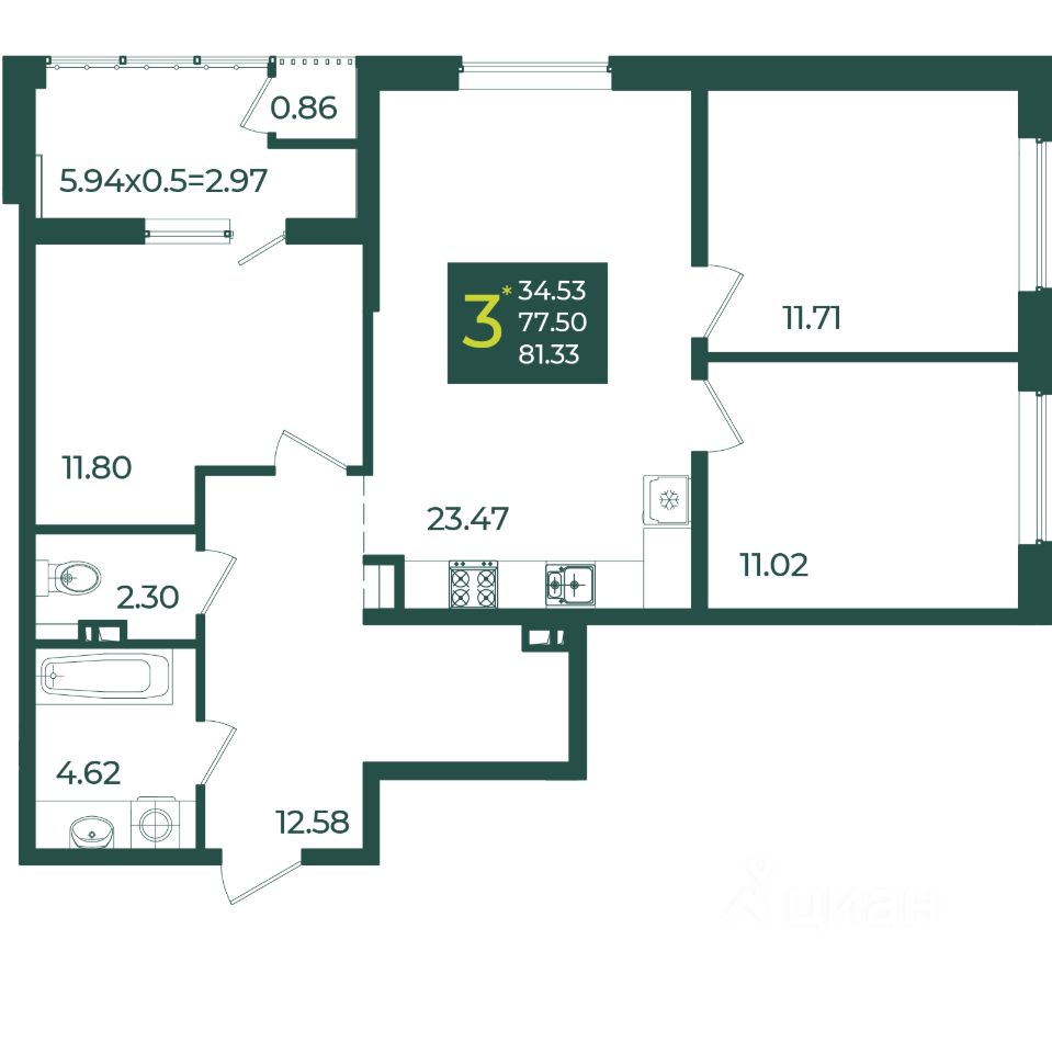 Общая площадь81,33 м2