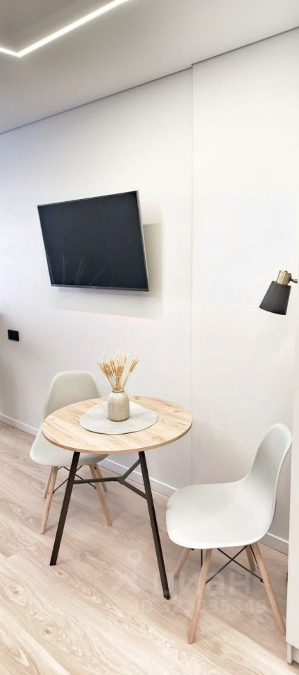 Арт. 125297899 Продаётся современная и светлая квартира-студия 29,4 кв. м. с авторским дизайнерским ремонтом 16/20 этаж . Уникальное зонирование чётко разделяет кухонную и спальную зоны, создавая комфортное и продуманное пространство.