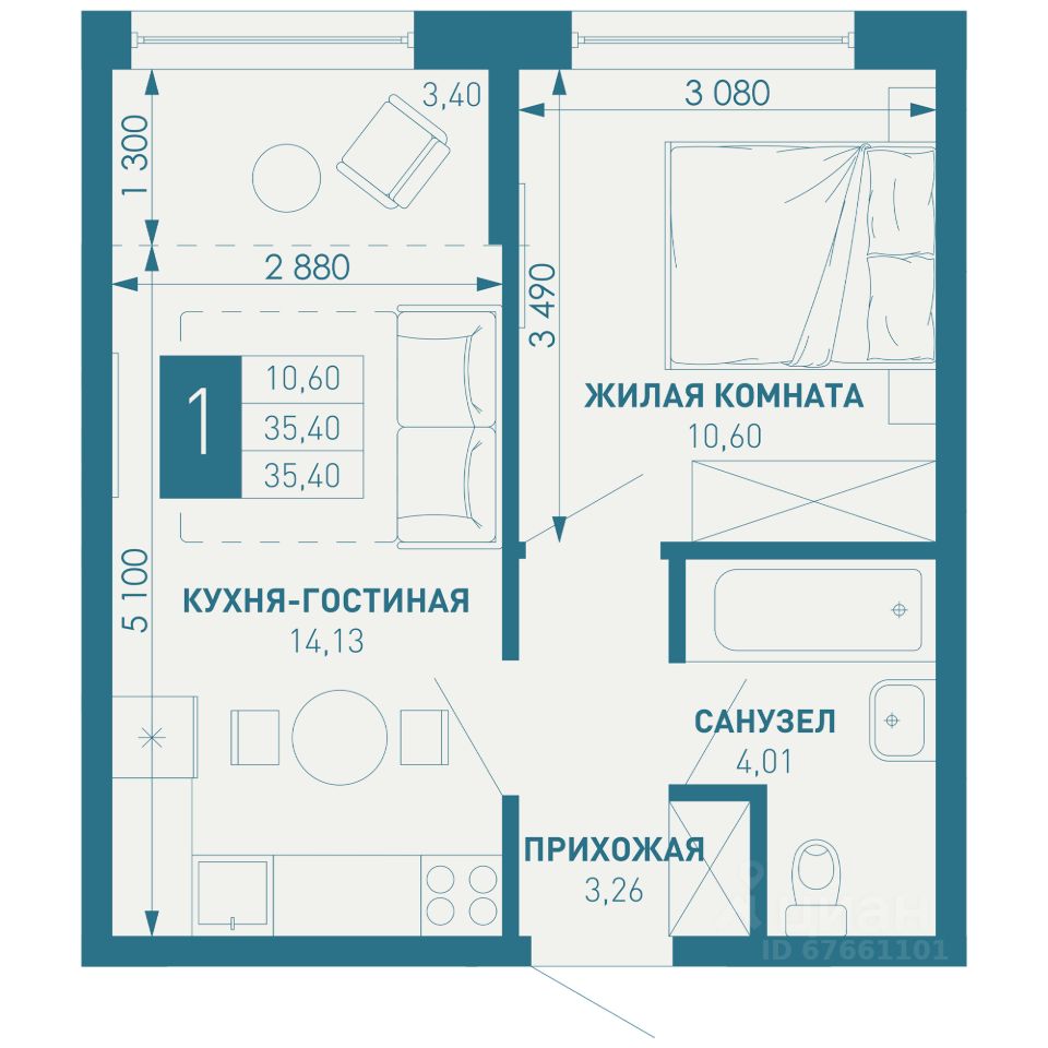 Общая площадь35,4 м2