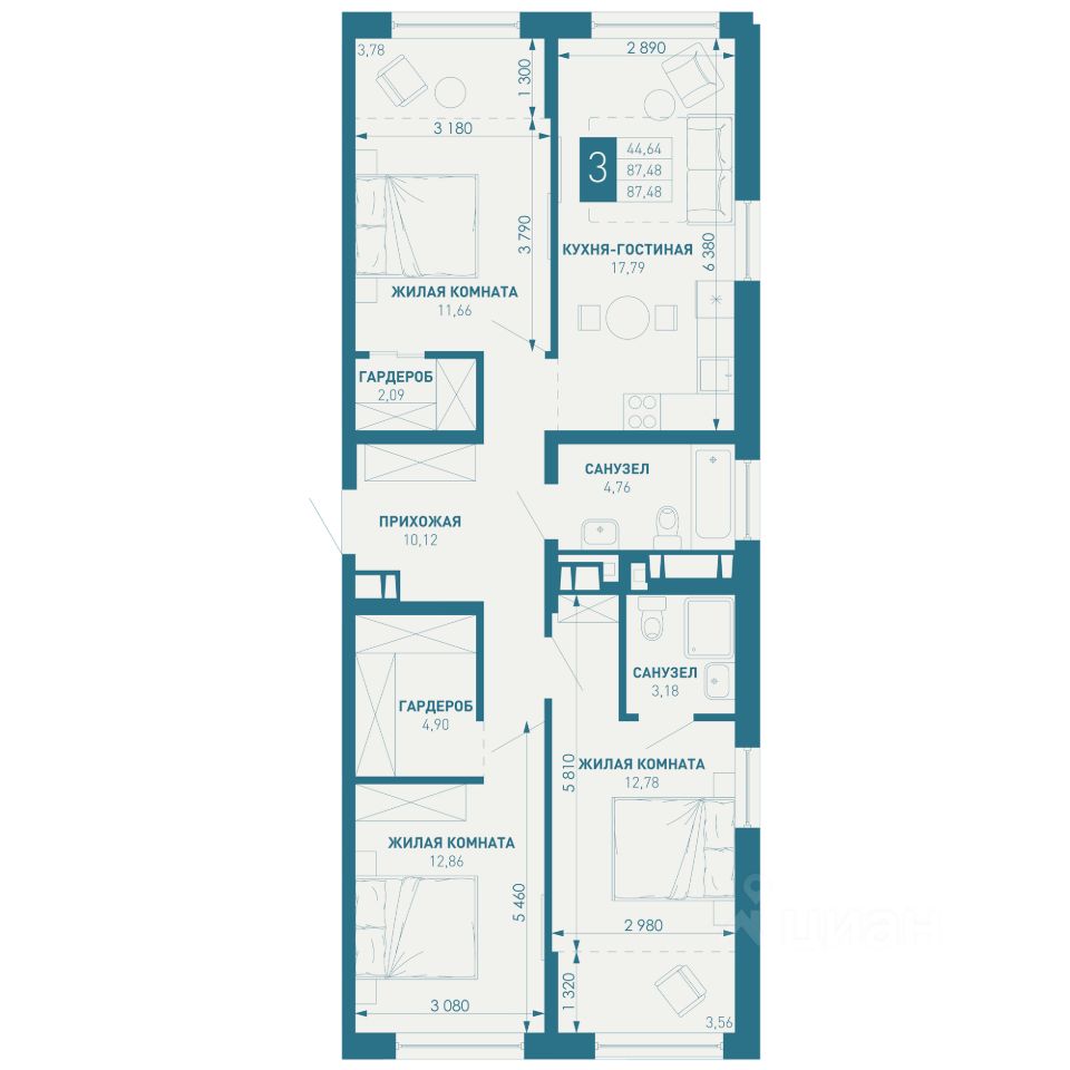Общая площадь87,48 м2