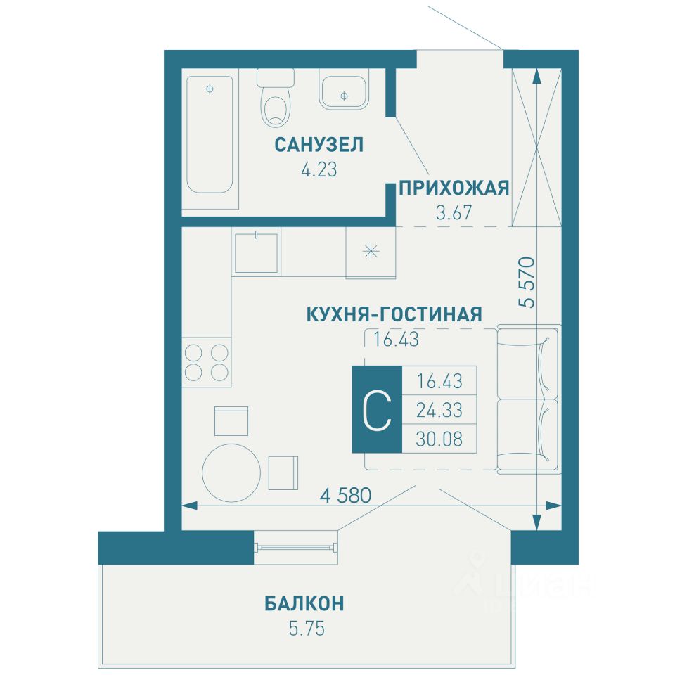 Общая площадь30,08 м2
