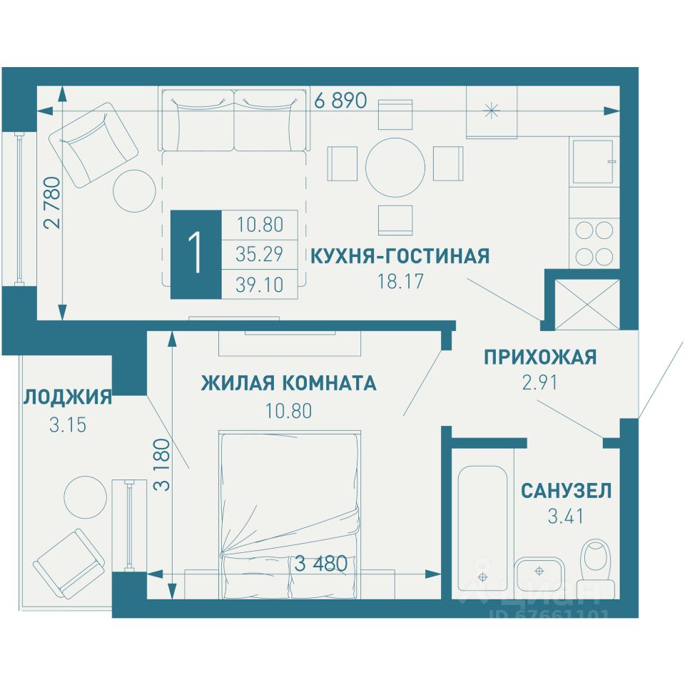 продам 1-к квартира10 972 645 ₽