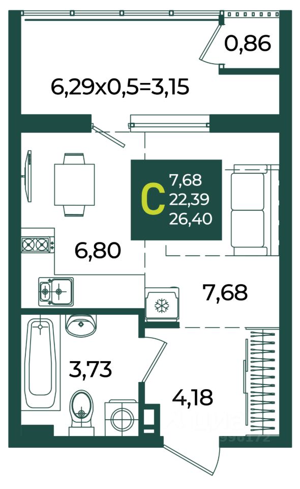 Общая площадь26,4 м2