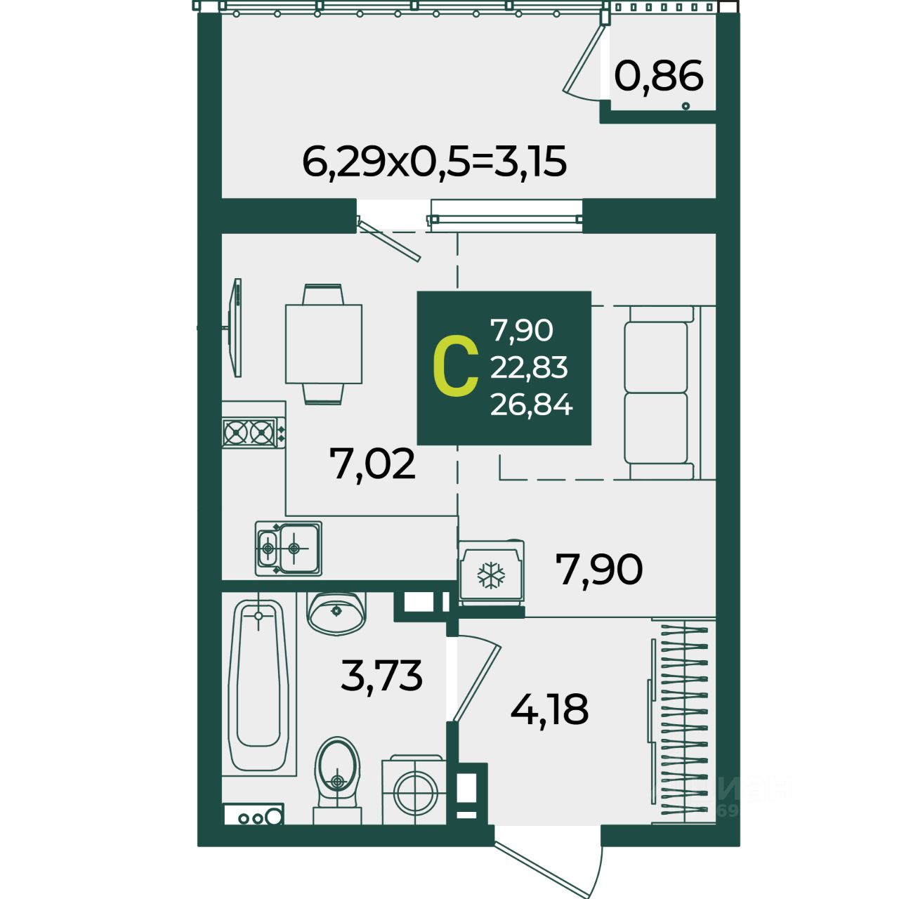 Общая площадь26,84 м2