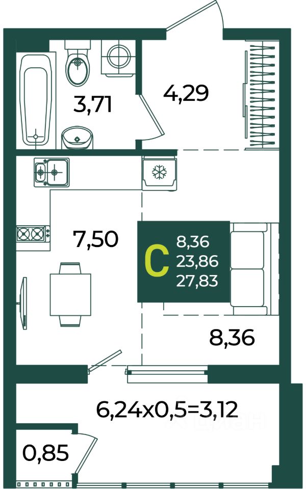 Общая площадь27,83 м2