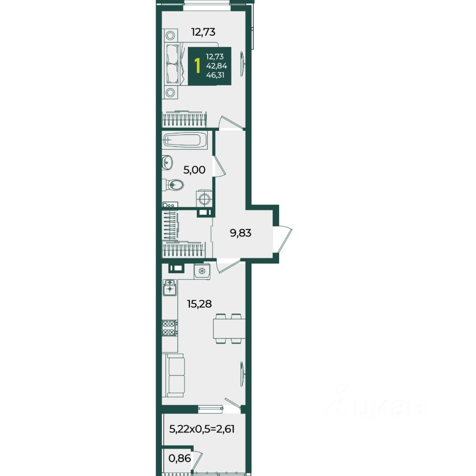 Общая площадь46,31 м2