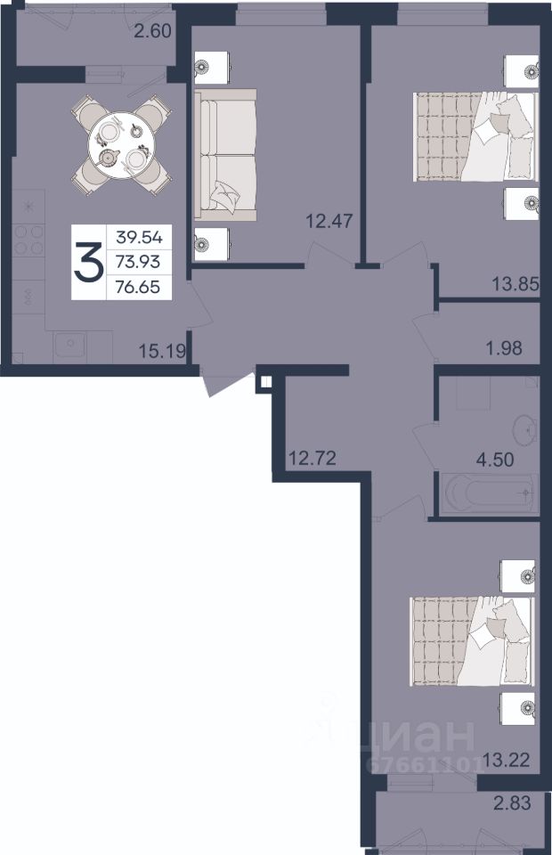 3 комнатная квартира с ремонтом 76.65 м², на 2 этаже в жилом комплексе ''Дом 101''.