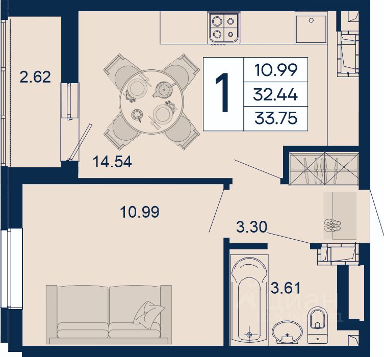 1 комнатная квартира с ремонтом 33.75 м², на 11 этаже в жилом комплексе ''Дом 101''.