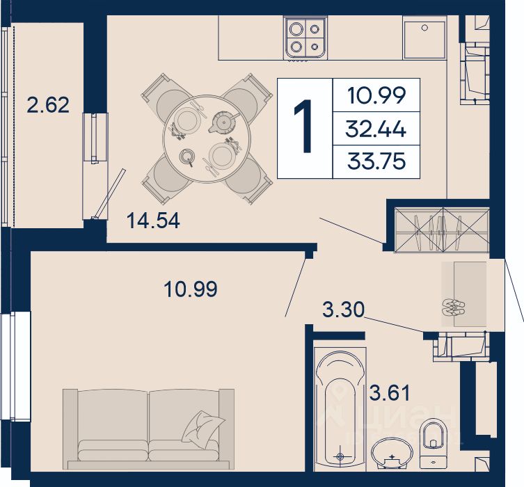 1 комнатная квартира с ремонтом 33.75 м², на 9 этаже в жилом комплексе ''Дом 101''.