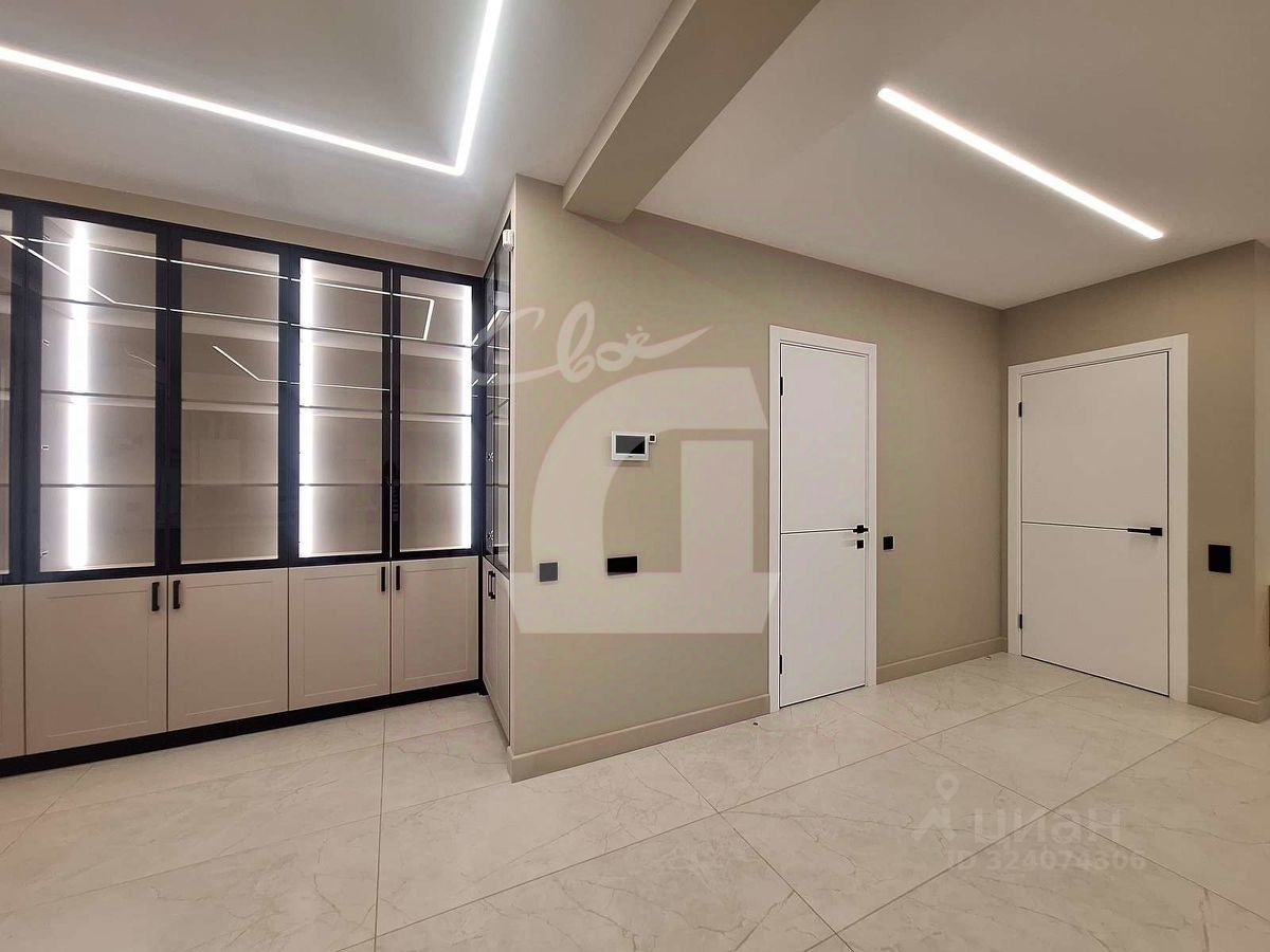 Остается встроенная мебель, все делалось на заказ, согласно проекту. Установлены все счетчики, водяной фильтр, датчик протечки, система охраны, видеонаблюдение.