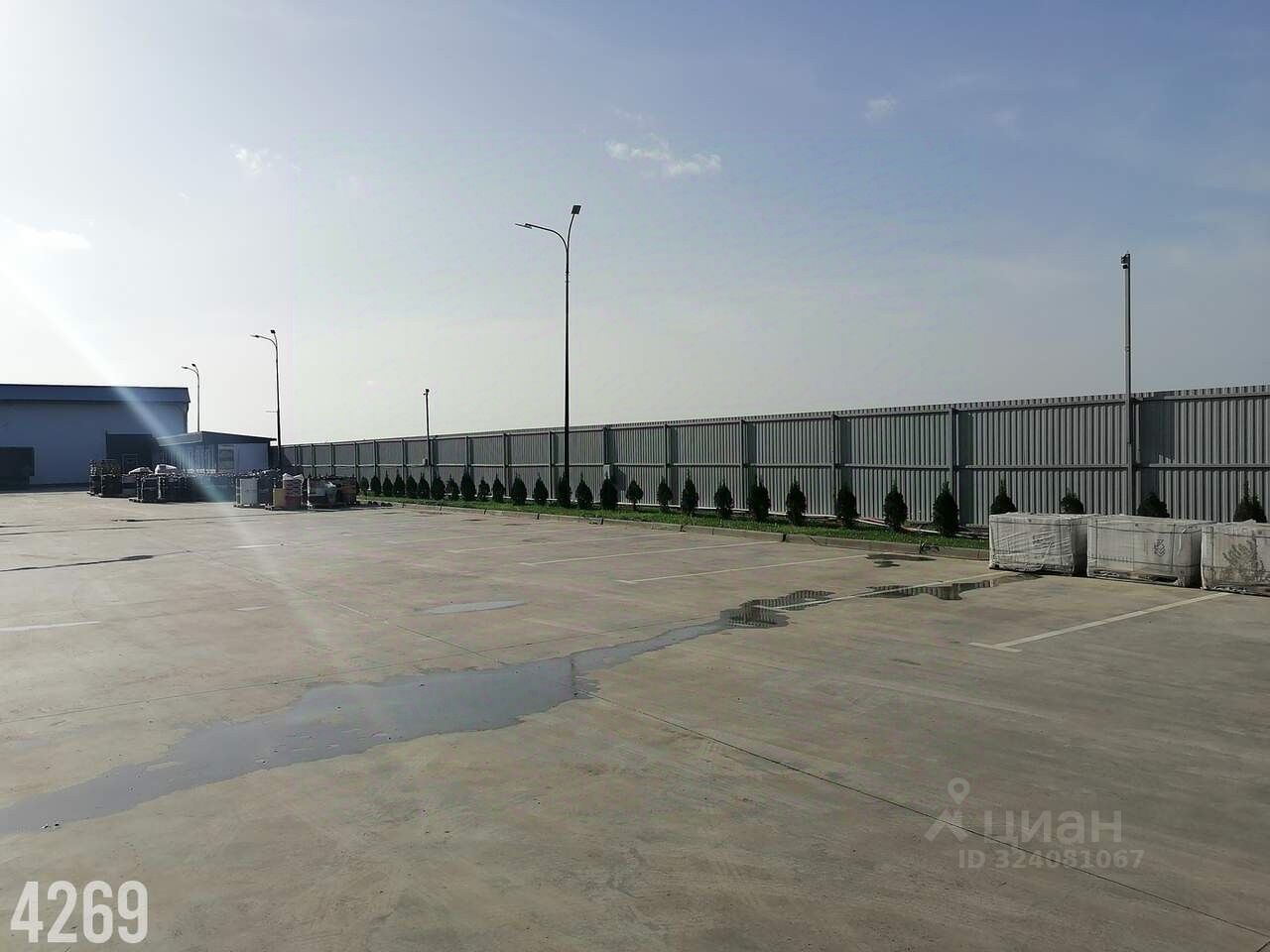 Площадка перед складом забетонирована, рассчитана для маневрирования и подъезда большегрузов,
