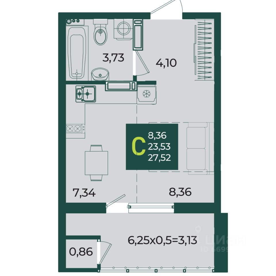 Общая площадь27,52 м2
