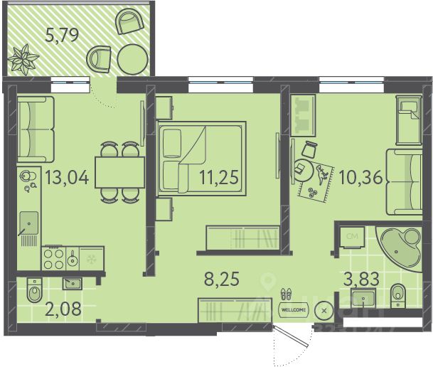 Общая площадь49,51 м2