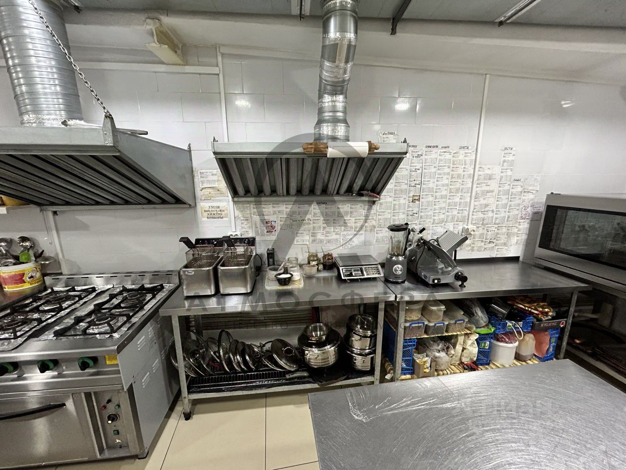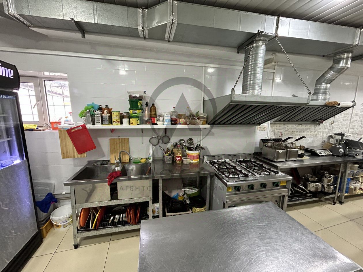 Инфраструктура и оснащение: Полностью оборудована кухня: профессиональные плиты, духовки, холодильные камеры, мойки, вентиляционная система, Барная стойка с инвентарем, Мебель - столы, стулья в отличном состоянии, Аудиосистема для фоновой/живой музыки, Сантехнические коммуникации в исправном состоянии.