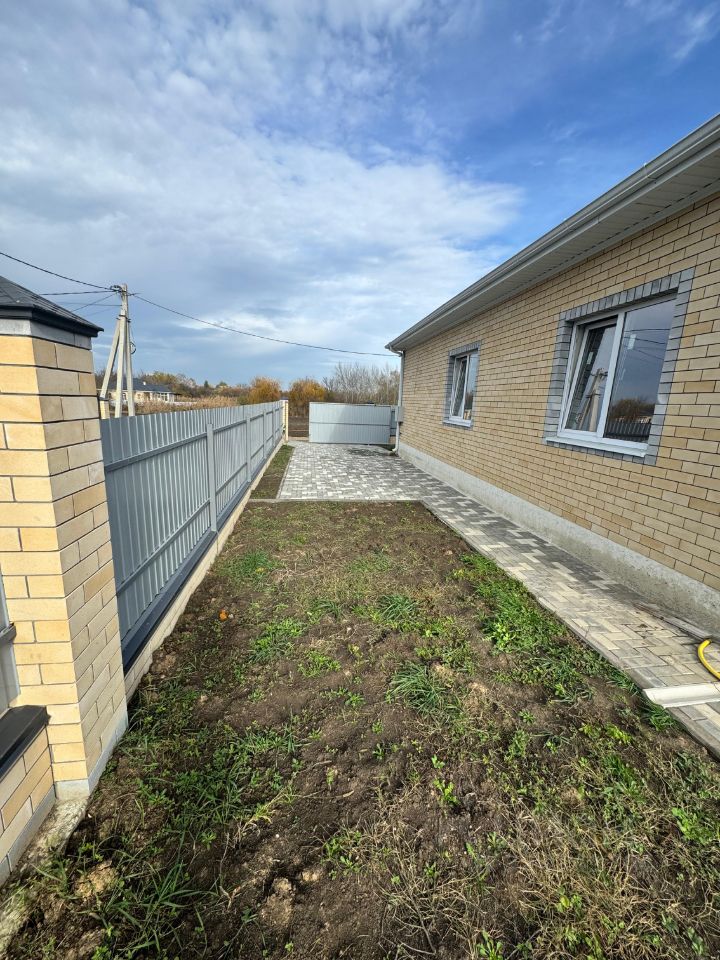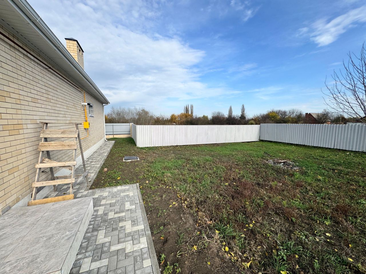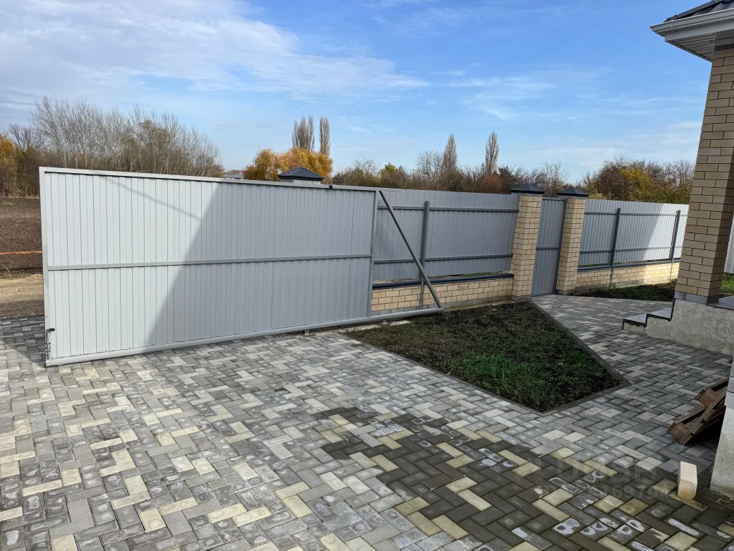 По периметру участка забор, откатные ворота консольного типа, паркова для автомобиля и отмостка в уличной тротуарной плитке. выводы воды для полива газона и растений.