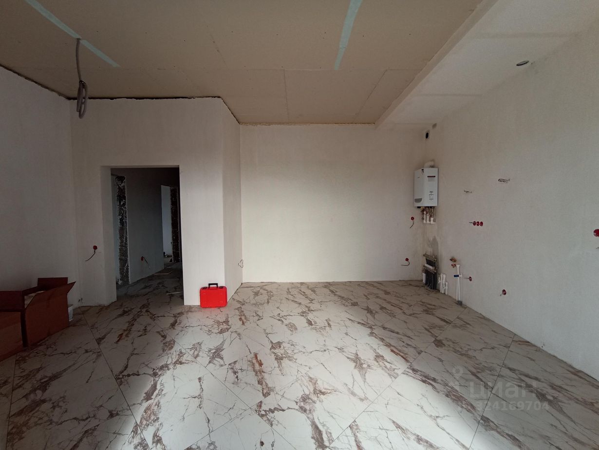 Внутри выполнен ремонт - напольное покрытие в комнатах ламинат, в кухне-гостиной, холле - плитка. Санузел в плитке. Межкомнатные двери, натяжные потолки. терраса на кухне гостиной в плитке, теплые полы и радиаторы. В комнатах радиаторы. Газовый котел.