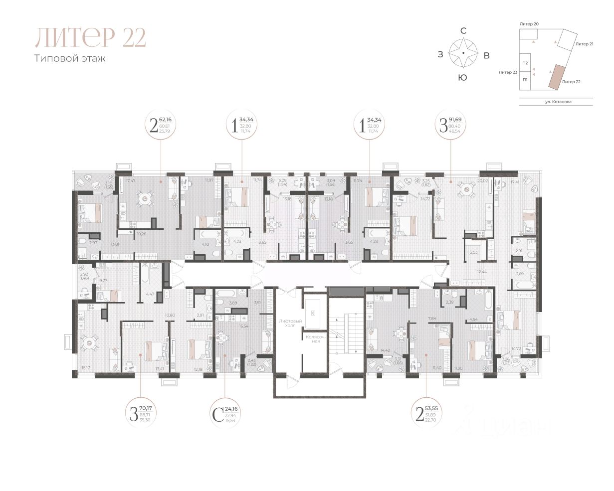 Общая площадь34,34 м2