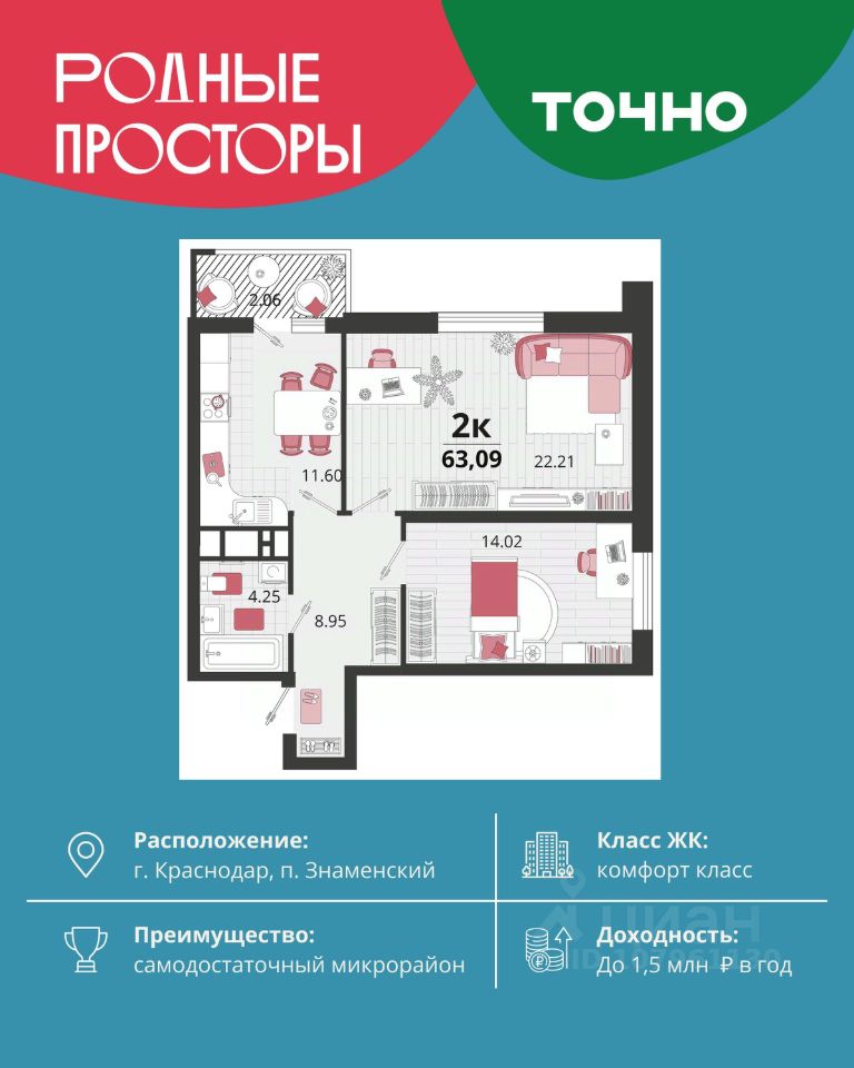Общая площадь63,15 м2