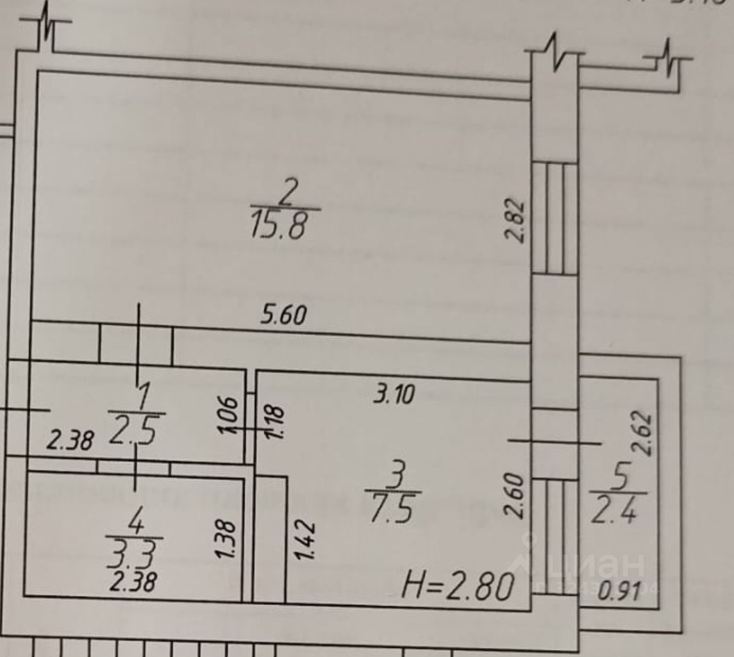 Внутри квартиры вас ждет просторная жилая комната площадью 15.8 кв. м и светлая кухня размером 7.5 кв. м. Высокие потолки 2.8 метра создают ощущение простора. Совмещенный санузел выполнен в современном стиле. В квартире также есть балкон, с которого открывается вид на тихий двор. Окна выходят во двор, поэтому вас не будет беспокоить шум с улицы.