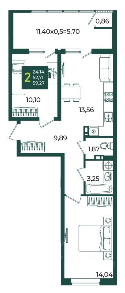 Общая площадь59,27 м2
