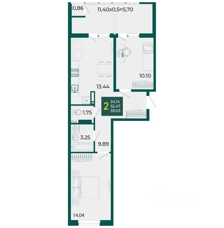 Общая площадь59,03 м2