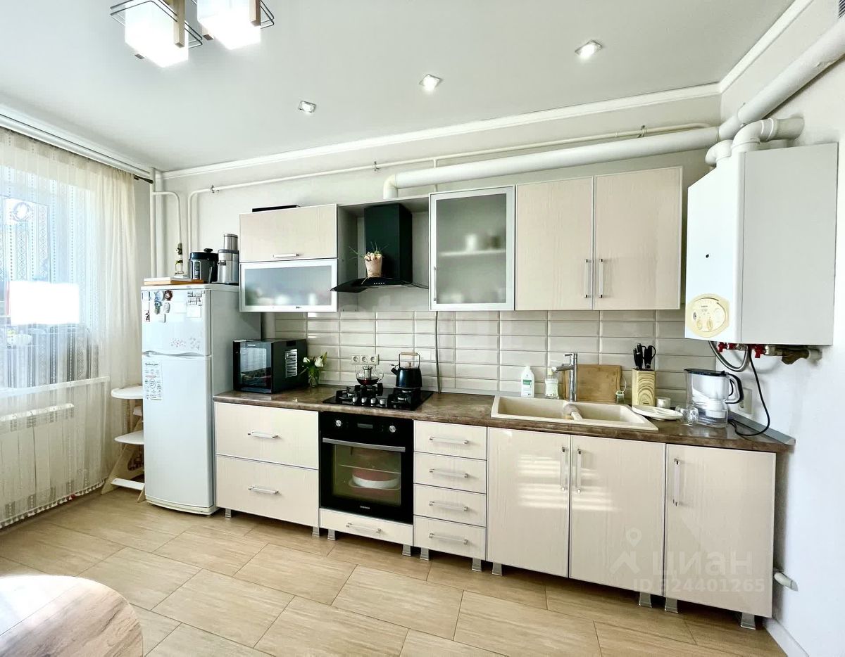Очень светлая, теплая, уютная. Просторная кухня, на которой можно комфортно встречать гостей.