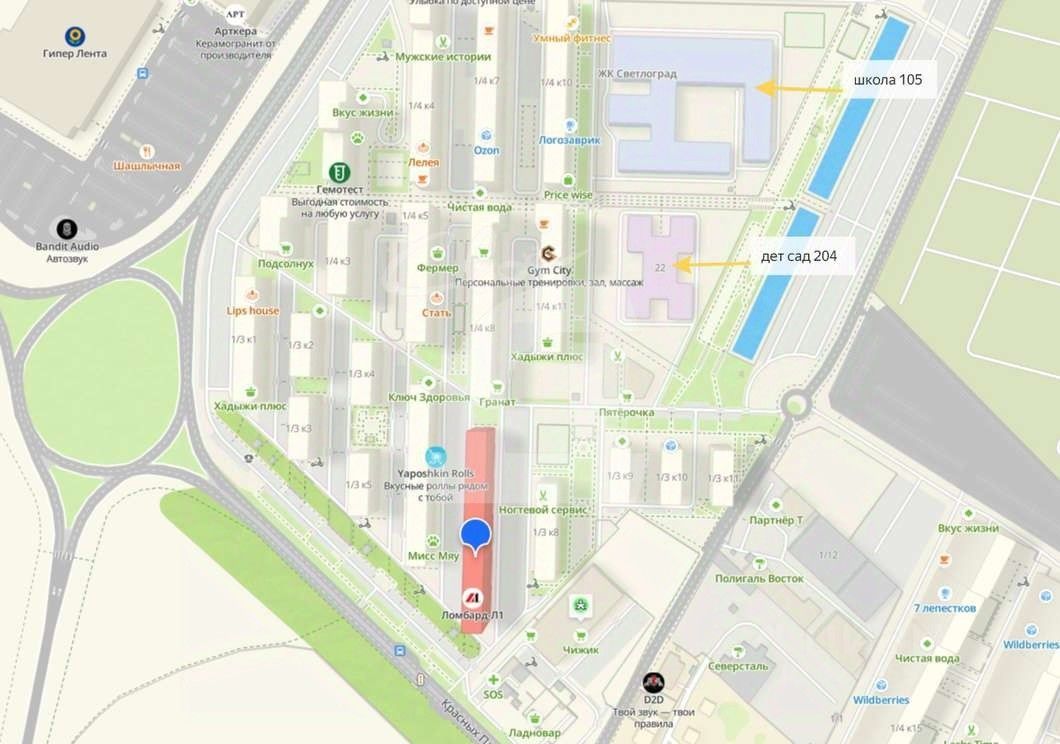 Большое количество детских игровых и спортивных площадок,
