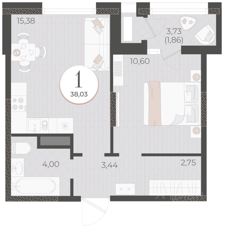 Общая площадь38,03 м2