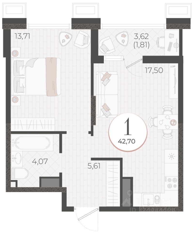 Общая площадь42,7 м2