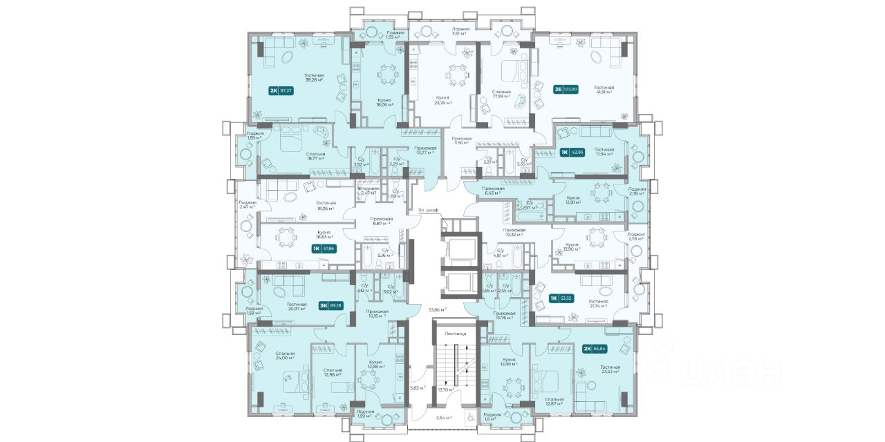 Общая площадь42,93 м2