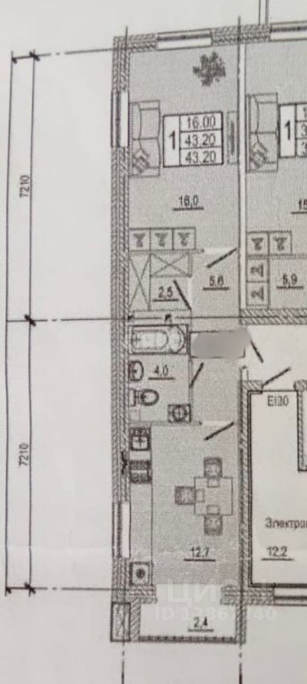 Общая площадь — 43,2 кв.м, идеально продуманное пространство для комфортной жизни: • Жилая комната — 16 кв.м, светлая и просторная, • Кухня — 12,7 кв.м, где легко разместится обеденная зона и вся необходимая техника, • Совмещенный санузел — 4 кв.м, современный и удобный, • Гардеробная — 2,5 кв.м, позволит поддерживать порядок и хранить вещи.