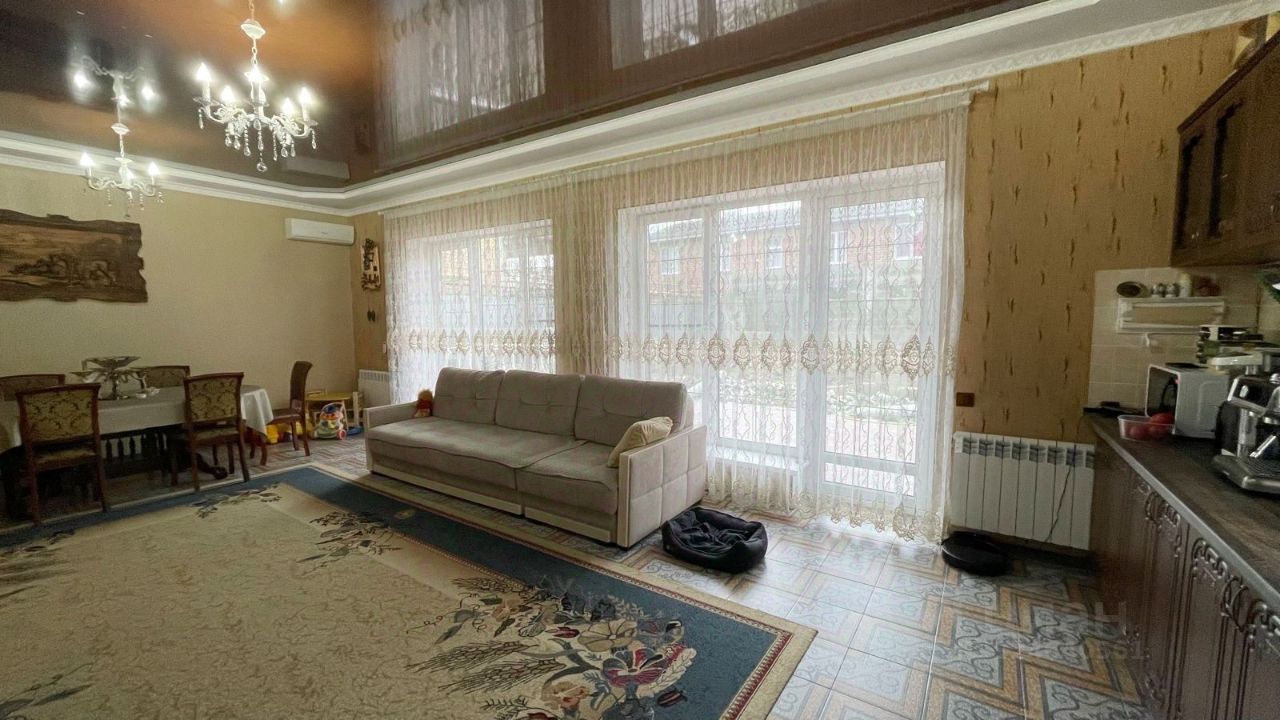 АНАПА, дом рядом с песчаным пляжем Пионерского проспекта. Полностью кирпичный 2-х этажный дом общей площадью 185,5кв.м. расположен земельном участке 7 соток, в ближайшем пригороде Анапы. От дома до центра города 15 минут на авто, до песчаного пляжа Пионерского проспекта 7 мин на авто или 20 минут пешком. В доме качественная внутренняя отделка, мебель и техника заходи живи. Планировка: 1 этаж прихожая 23,7кв.м., гардеробная, спальная комната 15,5кв.м., котельная 3,4кв.м., кухня-гостиная 41,7кв.м. с выходом на террасу, санузел совмещенный 8,3кв.м., потолки 3,06м., 2 этаж - три изолированные спальные комнаты 22,3+22,7+15,4кв.м., каждая с балконом, санузел совмещенный 4,6кв.м., потолки 2,8м. Во дворе: зона отдыха с барбекю, навес, летняя кухня с кладовой.
