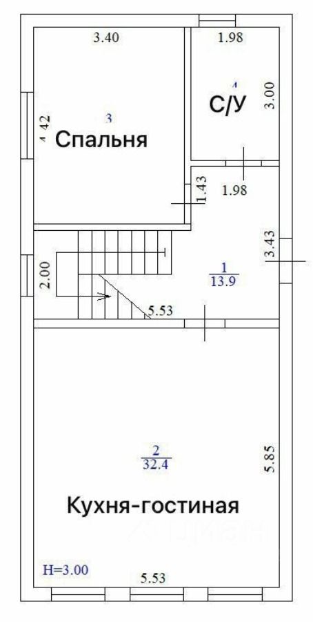 В доме просторная кухня гостиная , четыре раздельных спальни, два с/у.