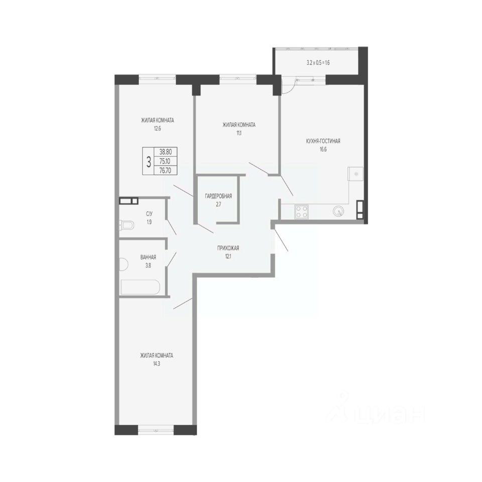 Общая площадь76,7 м2
