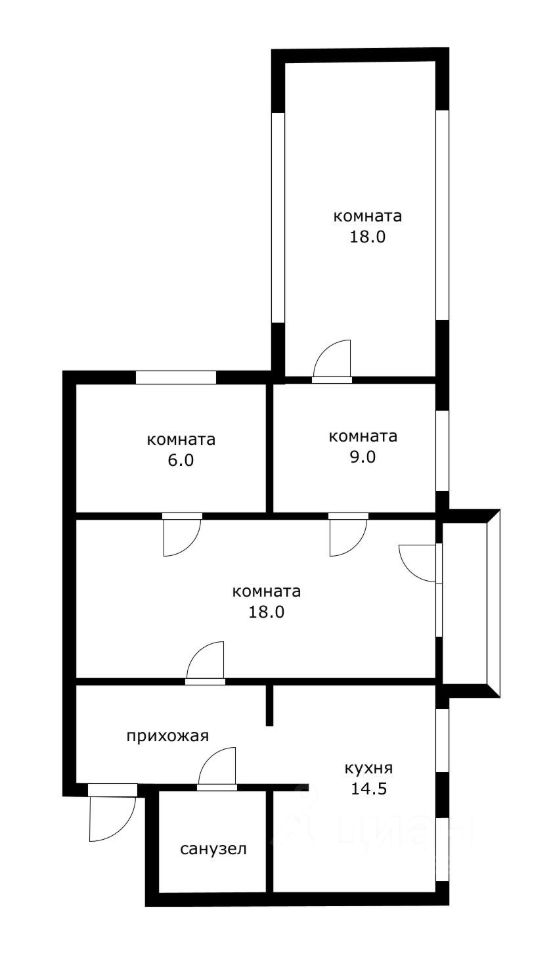 просторная кухнягостиная 14,5 кв. м — место для тёплых семейных вечеров и приёма гостей, светлая спальня 18 кв. м с двумя большими окнами — максимум естественного света и комфорта, вместительный зал с балконом — дополнительное пространство для отдыха и хранения, две смежноизолированные комнаты — гибкость в организации пространства (детская, кабинет, гостевая).