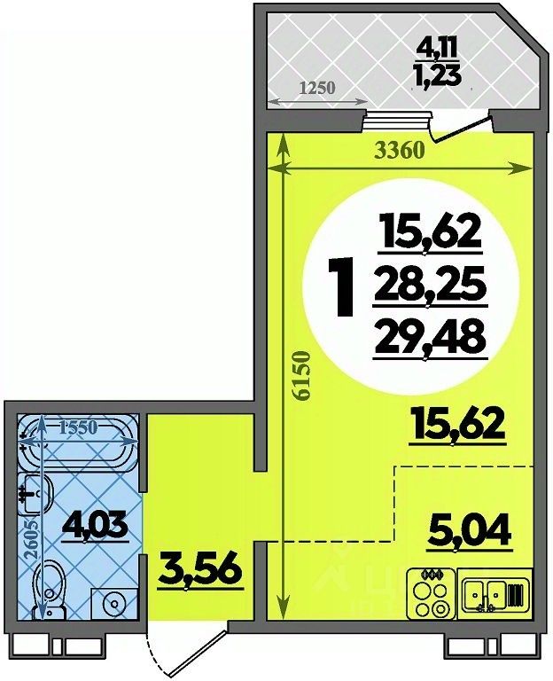 Общая площадь29,48 м2