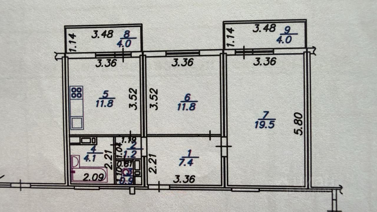 Площадь: 60,7 м², две изолированные комнаты, просторная кухня, совмещенный сан/узел, постирочная, два балкона