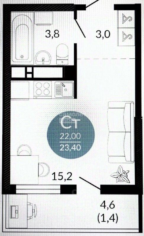 Арт. 127621793 Продается видовая квартира-студия в Южном районе города Новороссийска в новом жилом комплексе Облака 2.