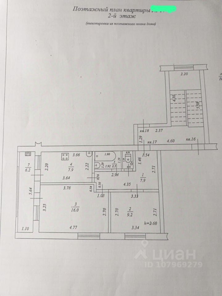 Общая площадь квартиры — 44 м², расположена на 2-м этаже.