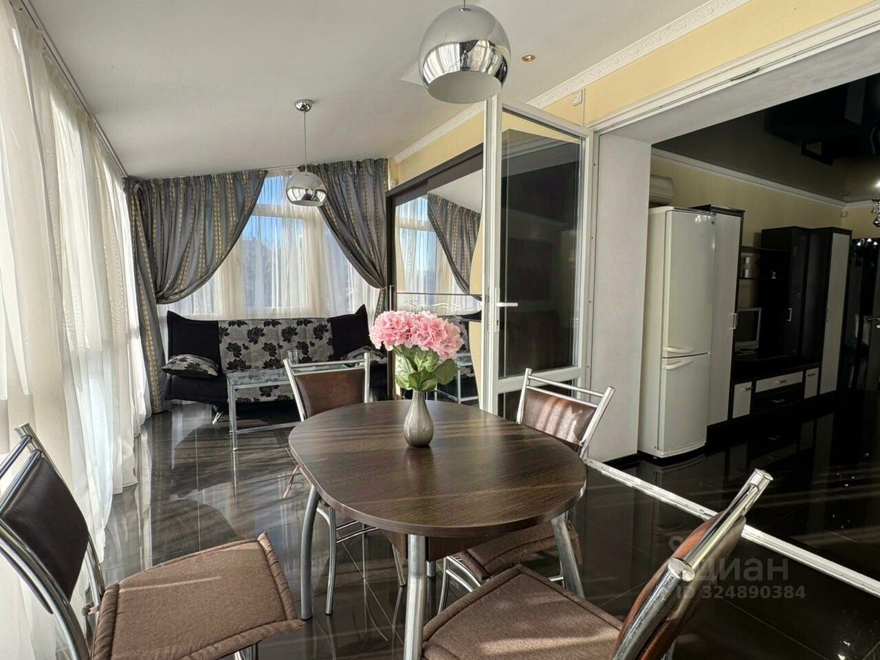 Просторная кухня-гостинная со всей необходимой техникой и мебелью для семейных вечеров или встреч с друзьями!