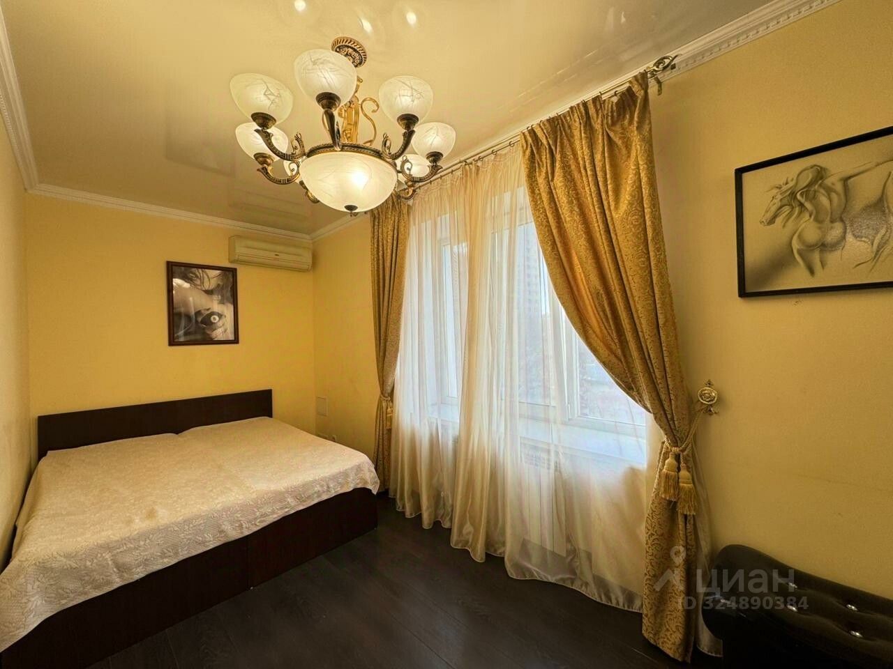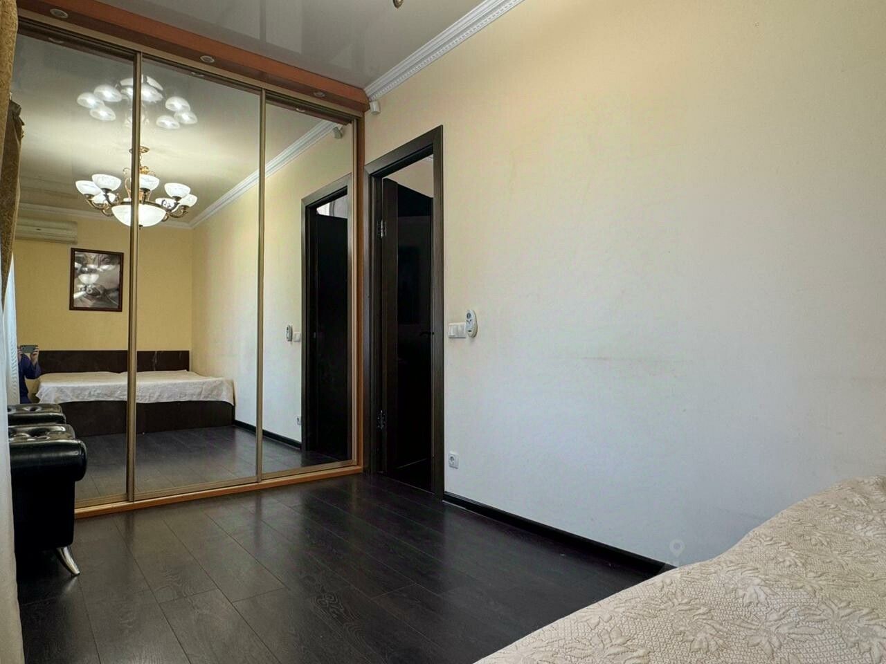 Уютная спальня с кроватью, кондиционером и шкафом-купе для хранения Ваших вещей.