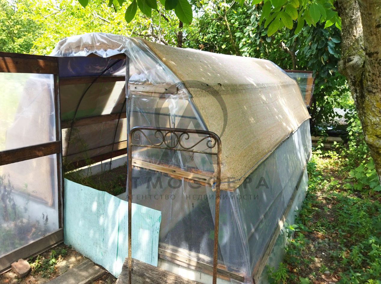 Двор заасфальтирован. Есть гараж, несколько сараев, курятник. На участке растут яблони, вишни, персики, инжир, малина, смородина, киви.