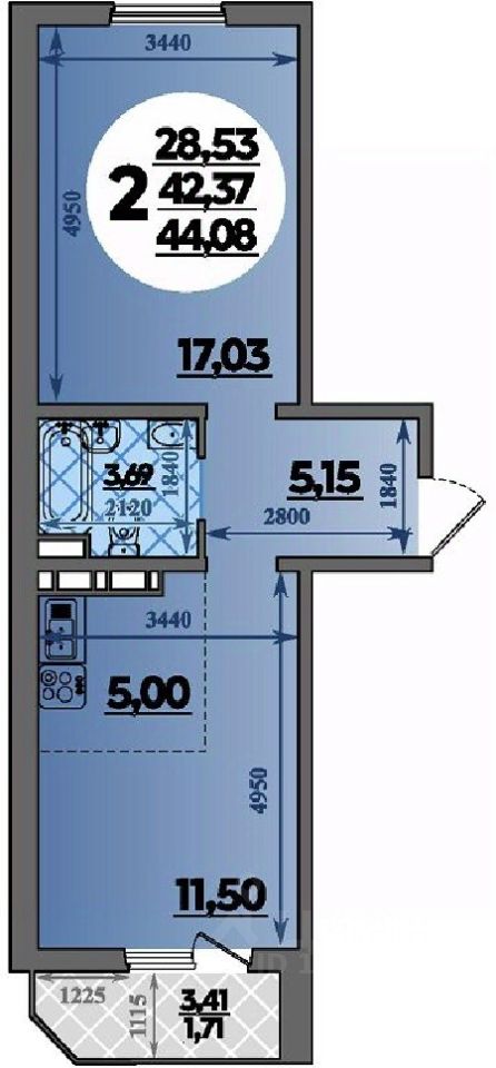 Общая площадь44,08 м2